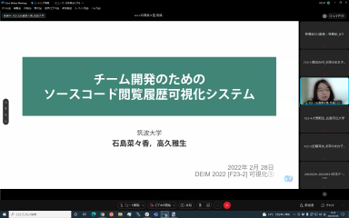 学類4年次の石島さんが第14回データ工学と情報マネジメントに関するフォーラム (DEIM2022) においてオンライン発表しました。