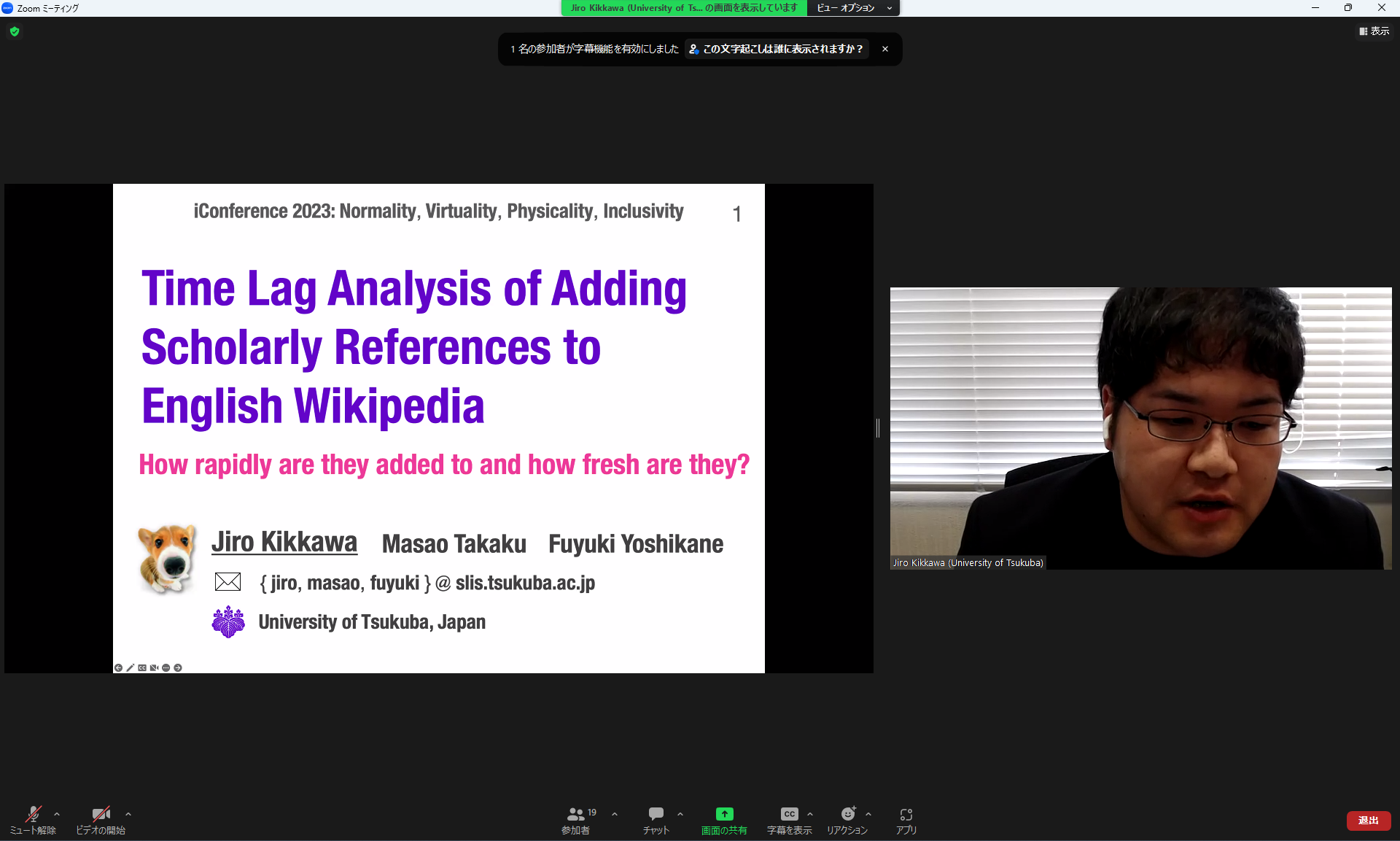 吉川先生、芳鐘先生と高久の共著論文がiConference 2022のオンラインセッションにおいて発表されました。
