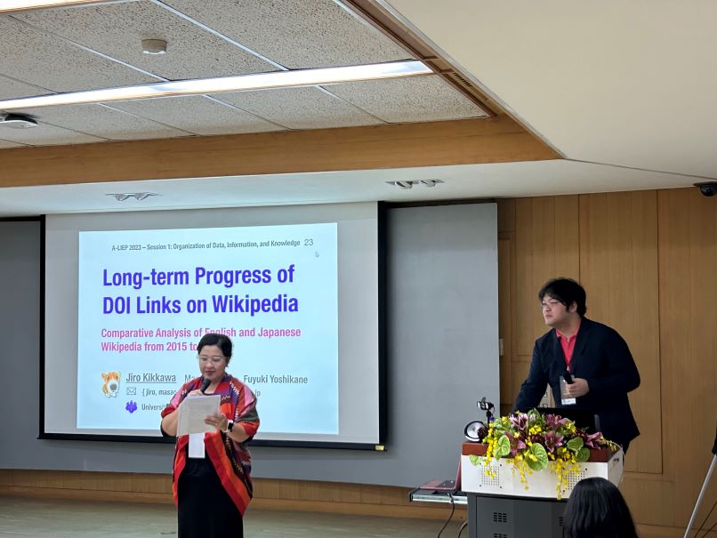- Jiro Kikkawa, Masao Takaku, Fuyuki Yoshikane. Long-term Progress of DOI Links on Wikipedia: Comparative Analysis of English and Japanese Wikipedia from 2015 to 2023. A-LIEP 2023, Taipei, Taiwan, 16p. (2023-12)