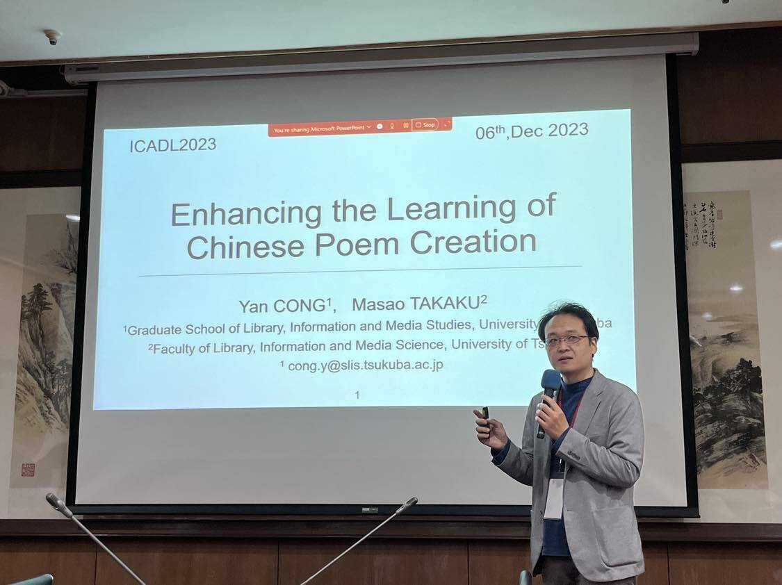 - Yan Cong, Masao Takaku. Enhancing Learning of Chinese Poem Creation through Auto-Generation and Evaluation System. ICADL 2023, Taipei, Taiwan, Lecture Notes in Computer Science (LNCS), vol.14457, pp.3-17 (2023-12)