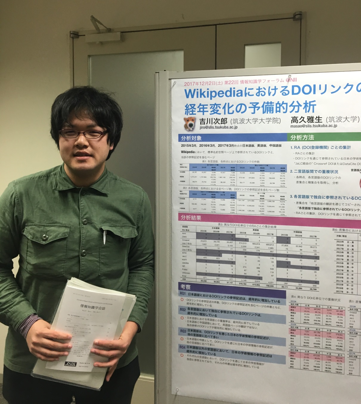- Jiro Kikkawa. DOI Links on English, Japanese, and Chinese Wikipedias, WikiCite 2017, Vienna, Austria (2017-05)